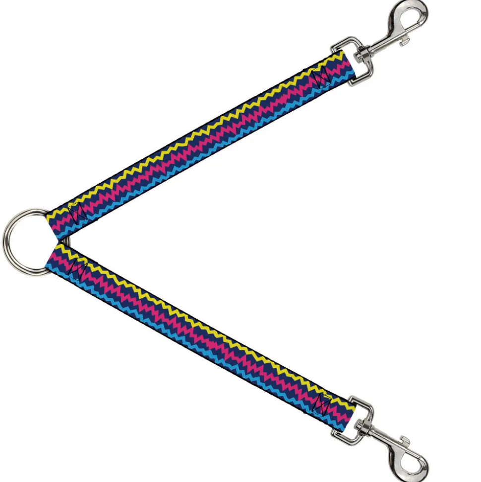 Dog Leash Splitter – Scribble Zig Zag Stripe Navy/Multi Color