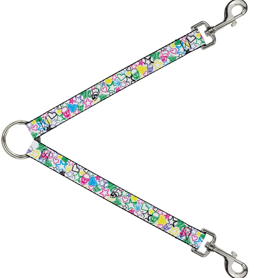 Dog Leash Splitter – Sketch Skull/Star/Heart White/Multi Color