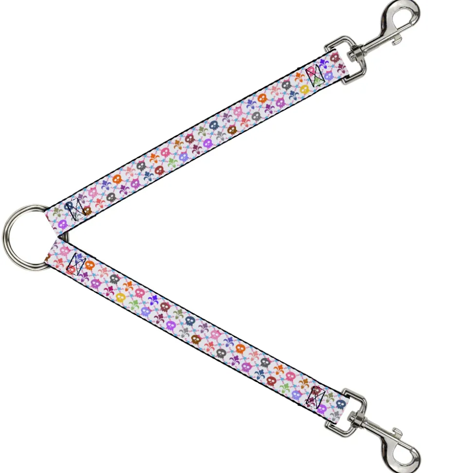 Dog Leash Splitter - Skull & Fleur-de-Lis White/Multi Color