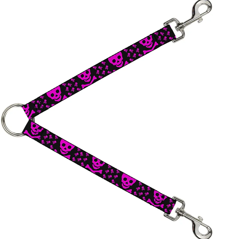 Dog Leash Splitter – Skull w/Babies Black/Fuchsia