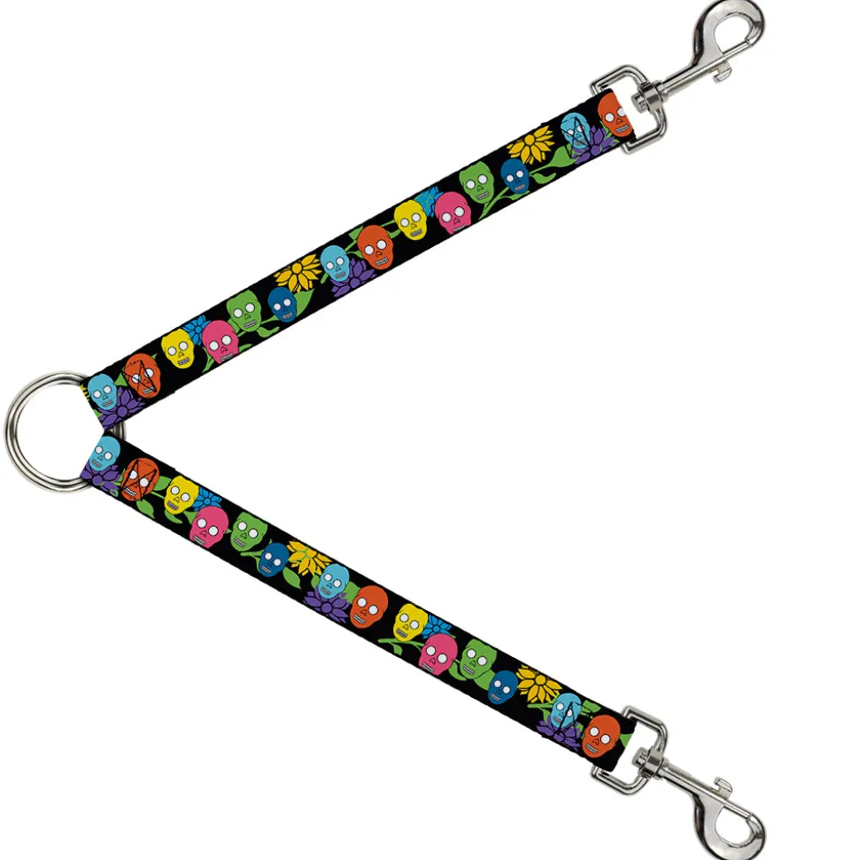 Dog Leash Splitter – Skulls & Flowers Black/Multi Color