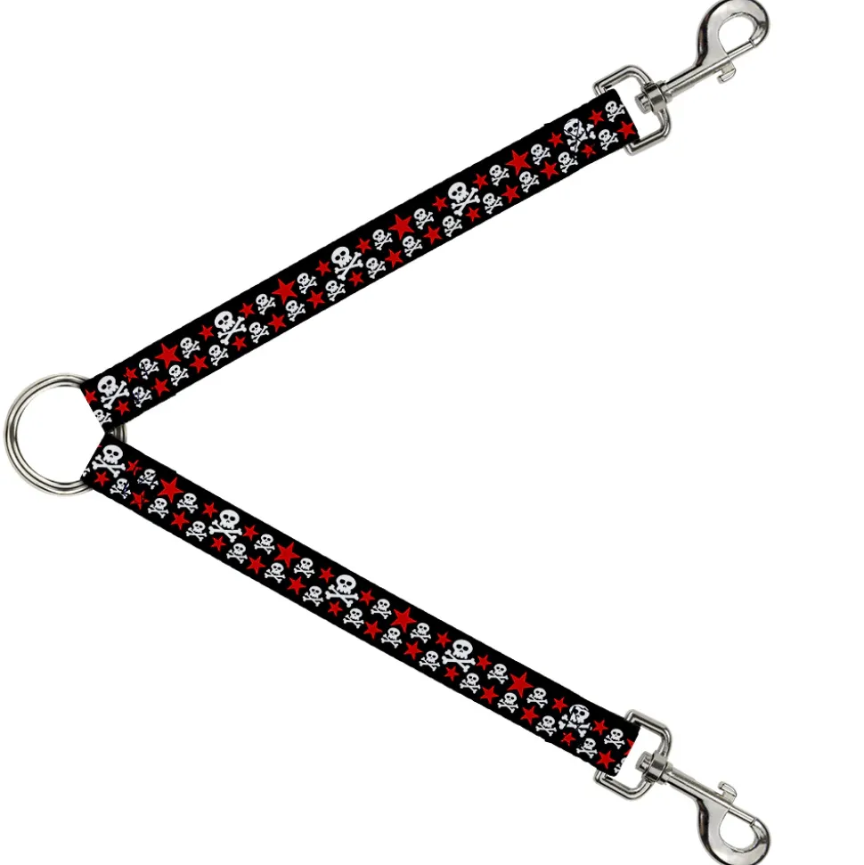 Dog Leash Splitter – Skulls & Stars Black/White/Red
