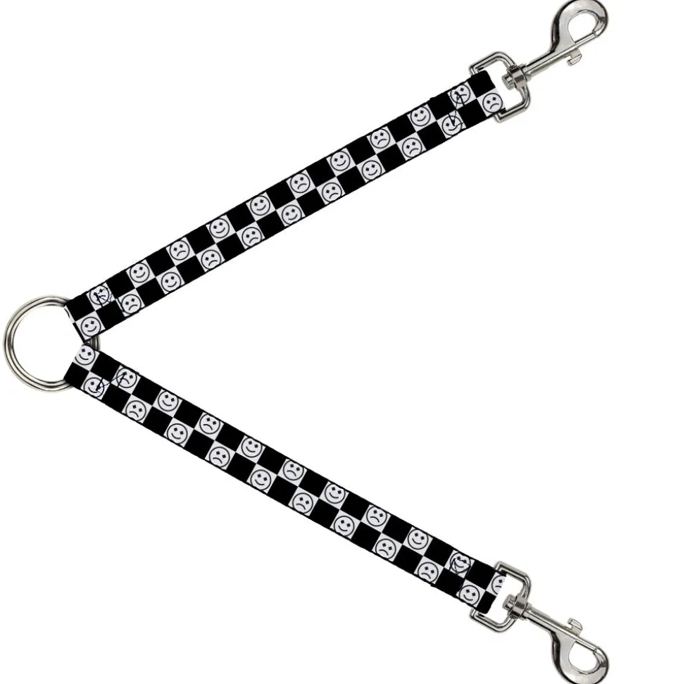 Dog Leash Splitter - Smiley Sad Face Checker Black/White