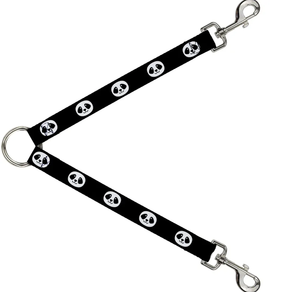 Dog Leash Splitter – Smiling Panda Face Black/White