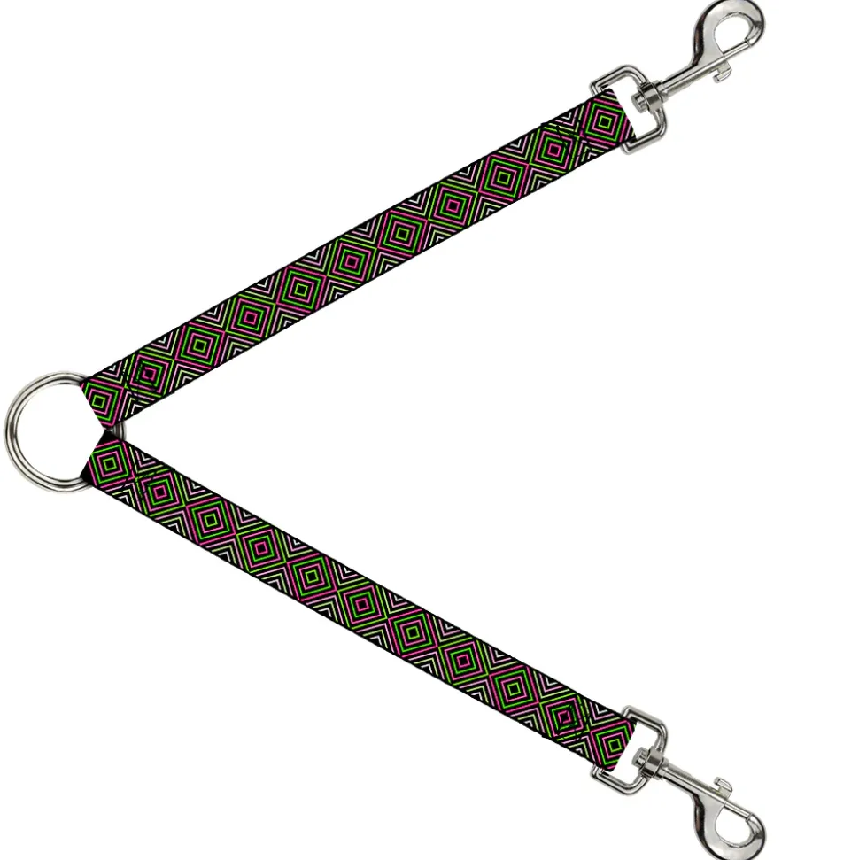Dog Leash Splitter - Square Lines Black/Greens/Pinks