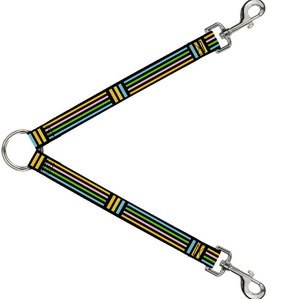 Dog Leash Splitter - Stripe Blocks Black/Multi Pastel