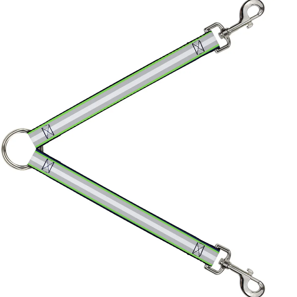 Dog Leash Splitter - Stripes Navy/Neon Green/Silver/White
