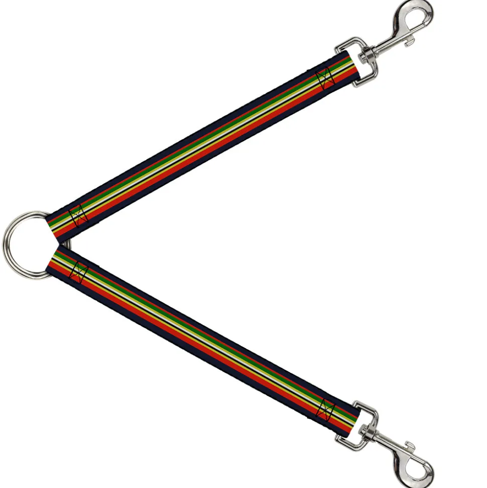 Dog Leash Splitter - Stripes Navy/Red/Yellow/Black/White/Green