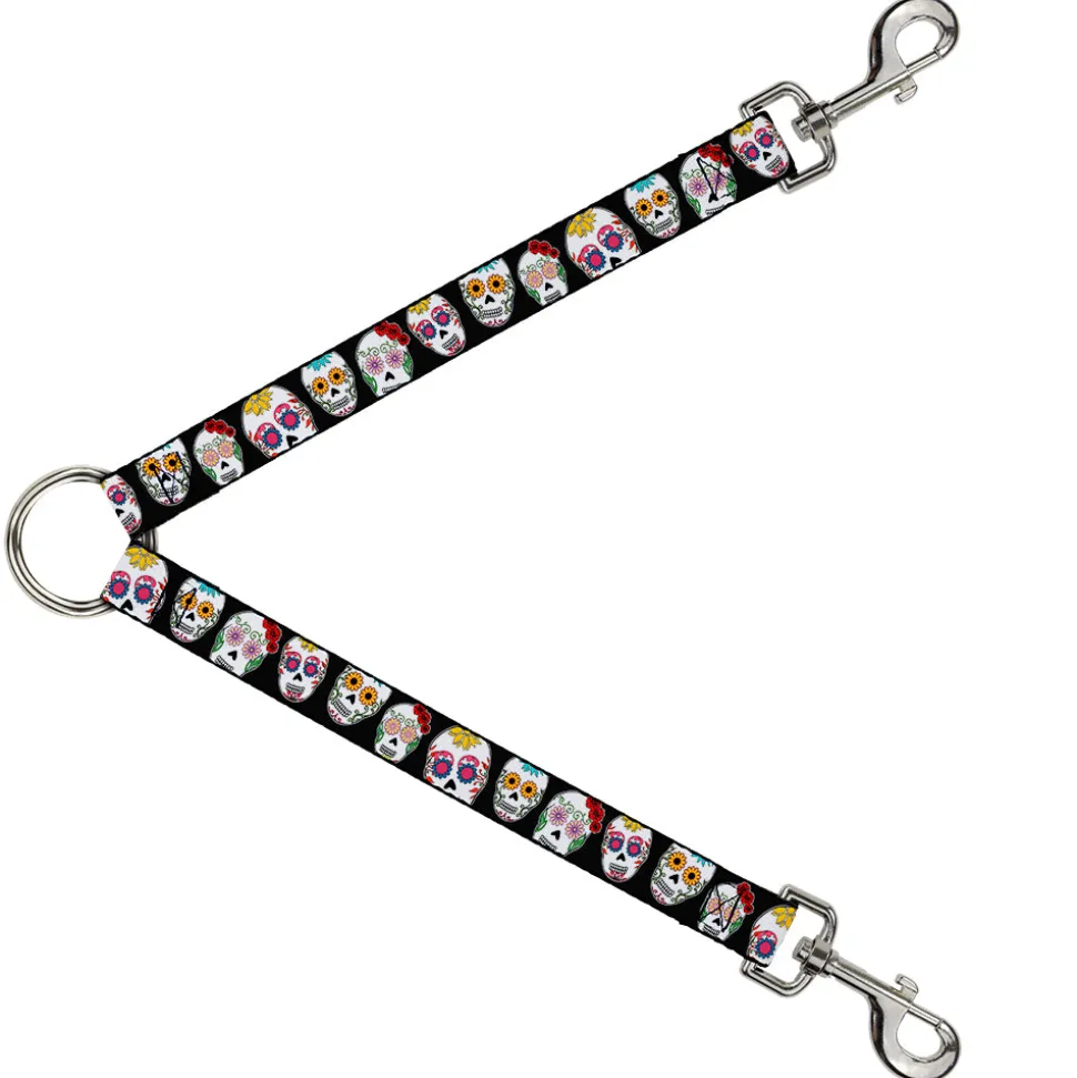 Dog Leash Splitter – Sugar Skull Outline Black/Multi Color