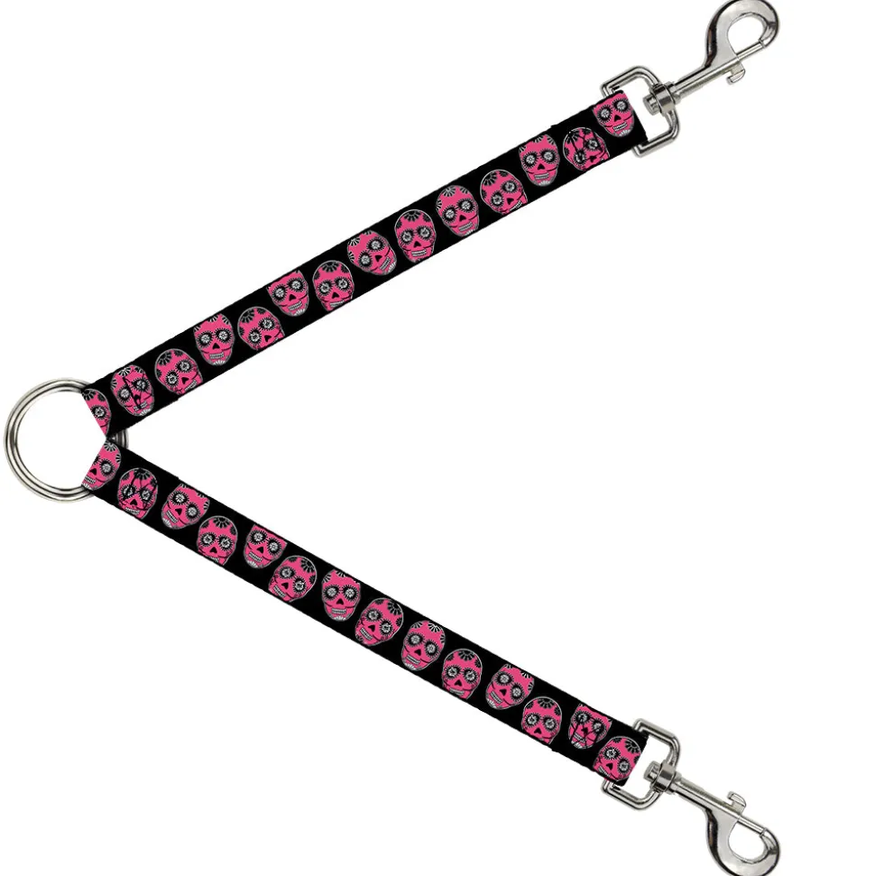Dog Leash Splitter – Sugar Skulls Black/White/Fuchsia