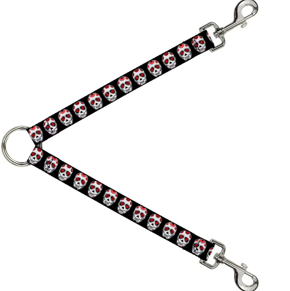 Dog Leash Splitter – Sugar Skulls Black/White/Red