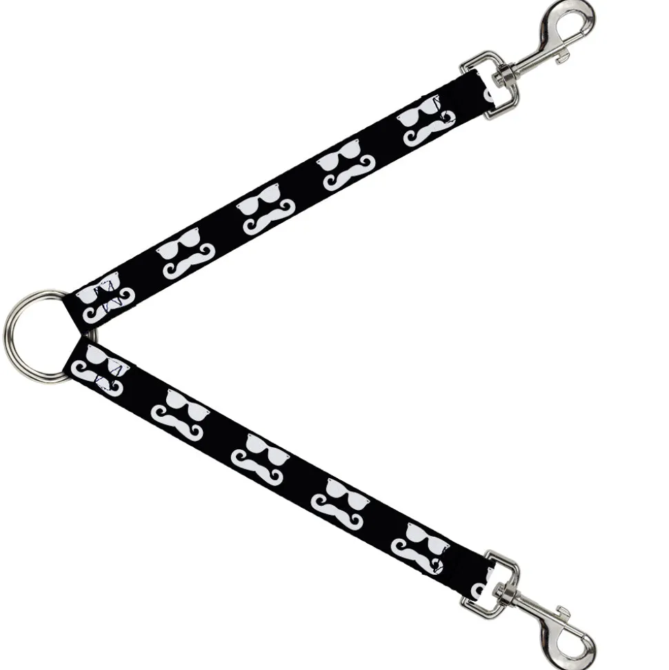 Dog Leash Splitter – Sunglasses & Mustache Black/White