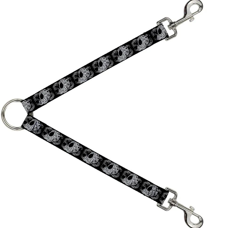 Dog Leash Splitter – Tattoo Skull Floral Black/White
