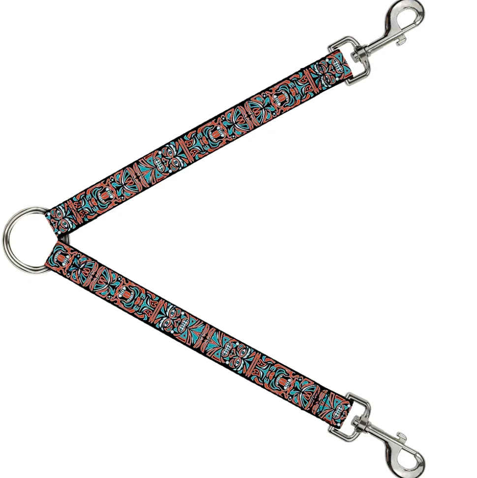 Dog Leash Splitter – Totem Carvings Black/White/Orange/Turquoise