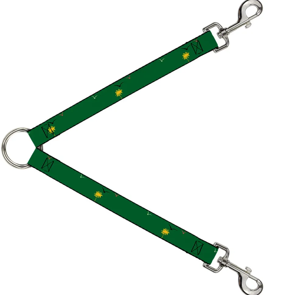 Dog Leash Splitter - Tropical Flora Greens/Reds/Gold
