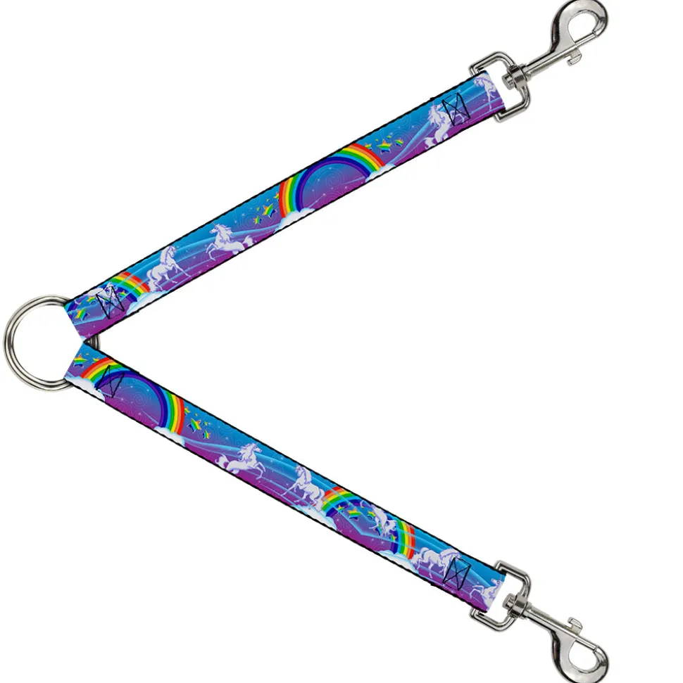 Dog Leash Splitter – Unicorns/Rainbows/Stars Blue/Rainbow/White
