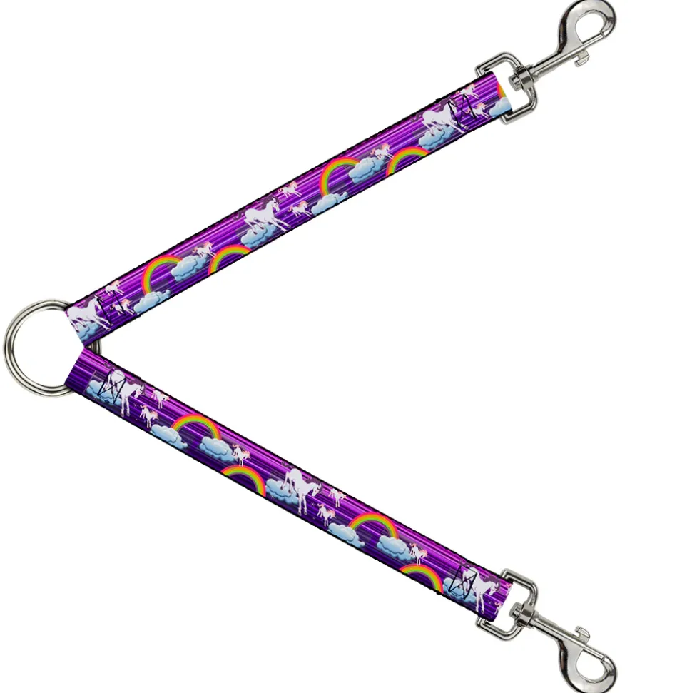 Dog Leash Splitter – Unicorns/Rainbows w/Stripes Purple
