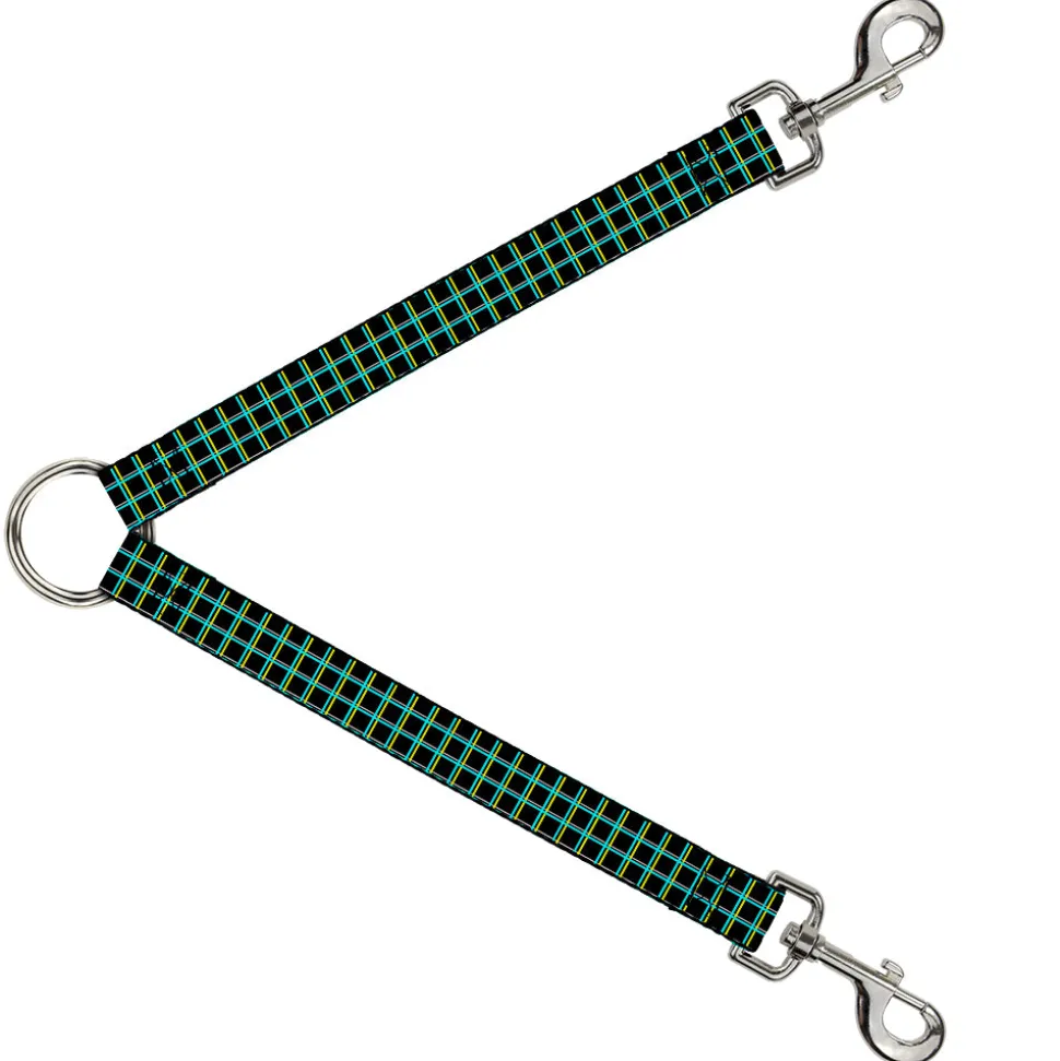 Dog Leash Splitter - Wire Grid Black/Turquoise/Yellow