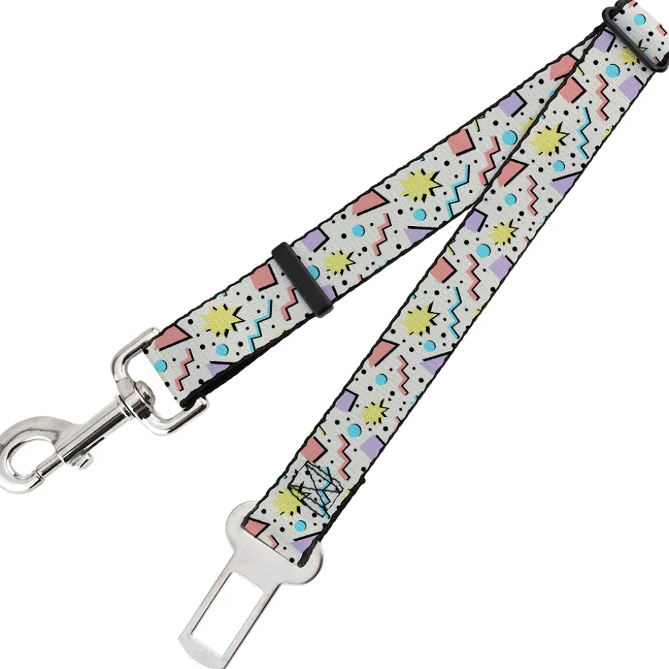 Dog Safety Seatbelt for Cars – 90s Nineties Grid Pattern Gray/Multi Pastel
