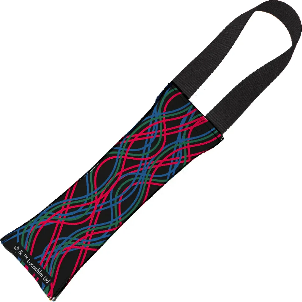 Dog Toy Squeaky Tug Toy – Star Wars C3-PO Front View CLOSE-UP + Wires Black Multi Color – BLACK Handle Webbing