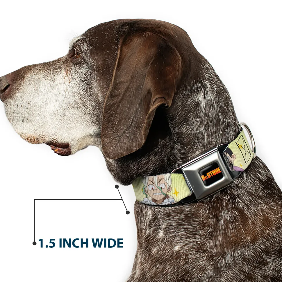 DR. STONE Title Logo Full Color Black/Orange Seatbelt Buckle Collar – Dr. Stone Chibi Senku and Gen Faces Stars Yellows