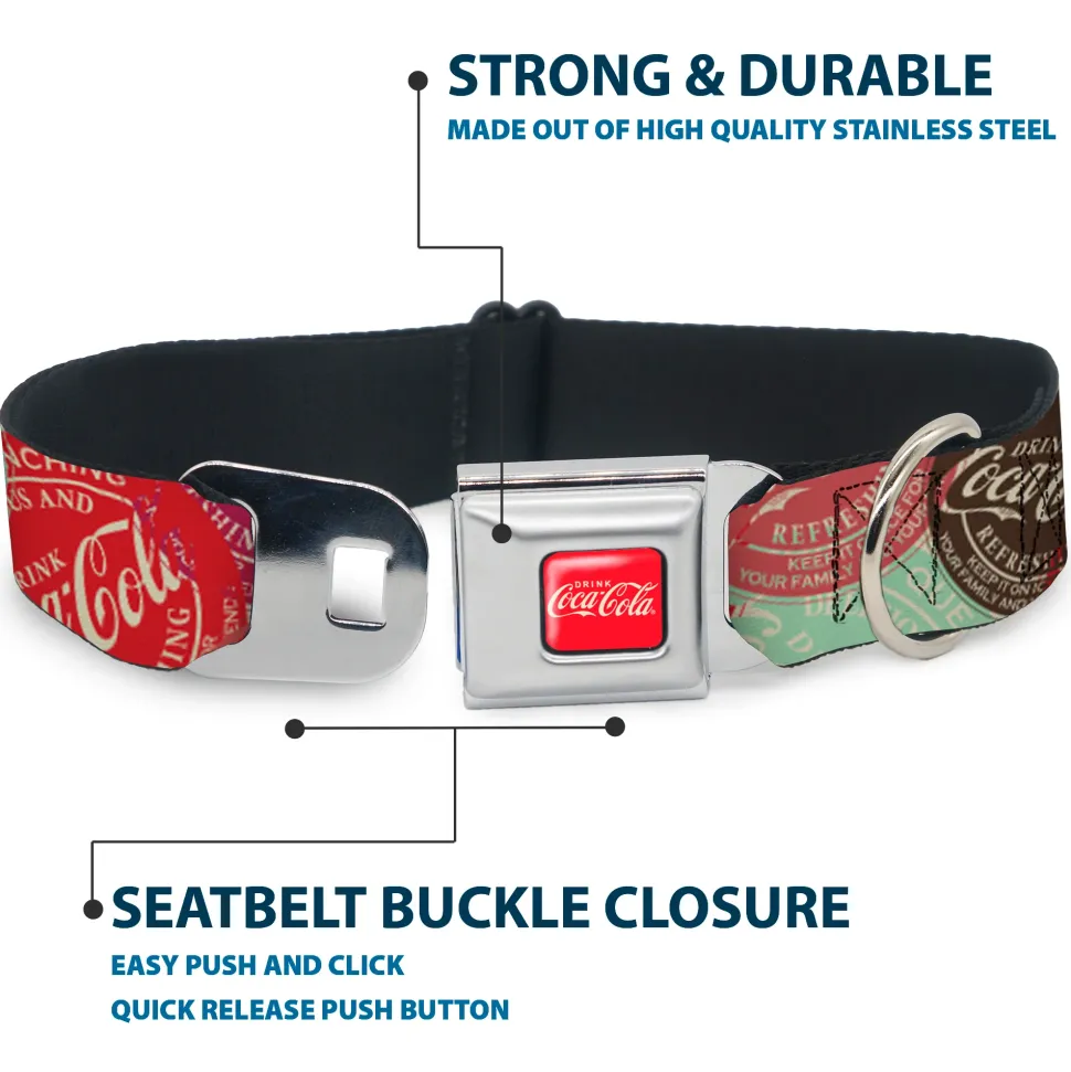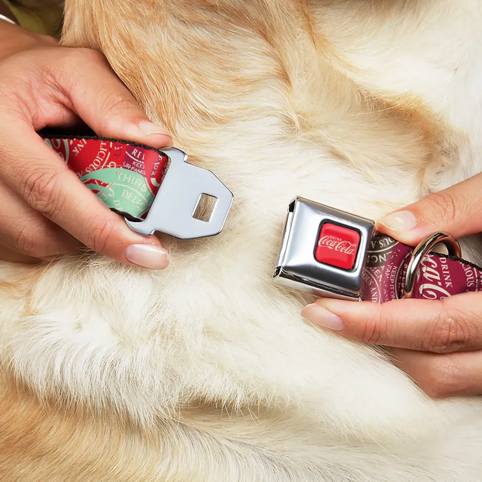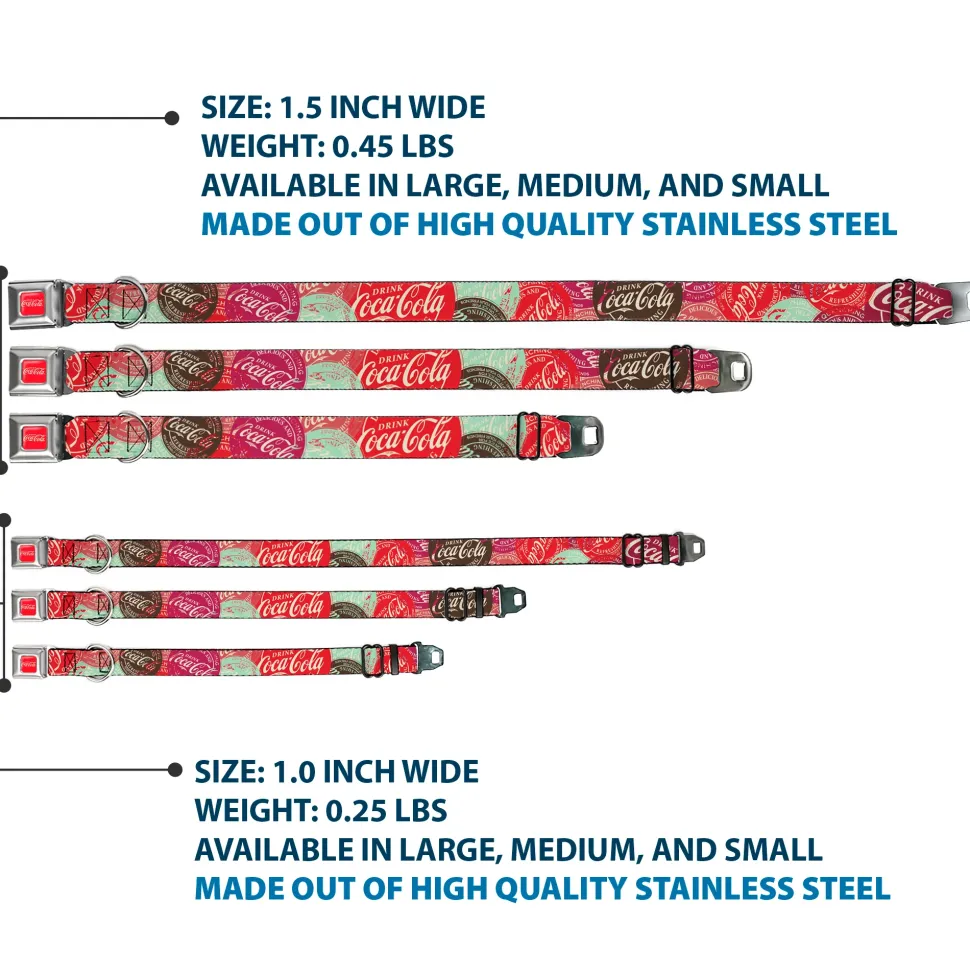 Your dog will be the talk of the town when people notice they’re wearing this awesome SeatBelt Dog Collar! Made from high-density polyester and durable steel components, this collar is built to last. It features beautiful vibrant artwork. The buckle is a miniature authentic SeatBelt Buckle, so you press the center button to release the clasp. This product is assembled in the USA by Buckle-Down Inc. and officially licensed by The Coca-Cola Company.