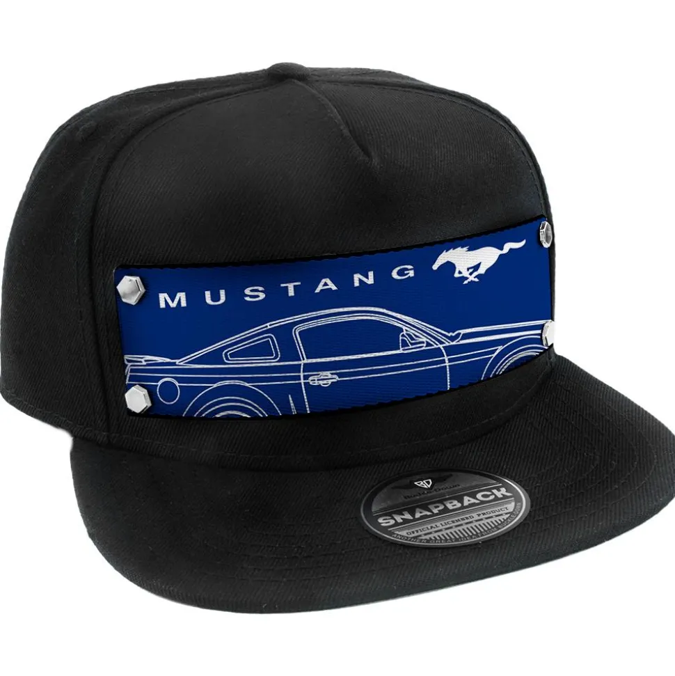 Embellishment Trucker Hat BLACK – Full Color Strap – MUSTANG/Pony Sideview Blueprint Blue/White