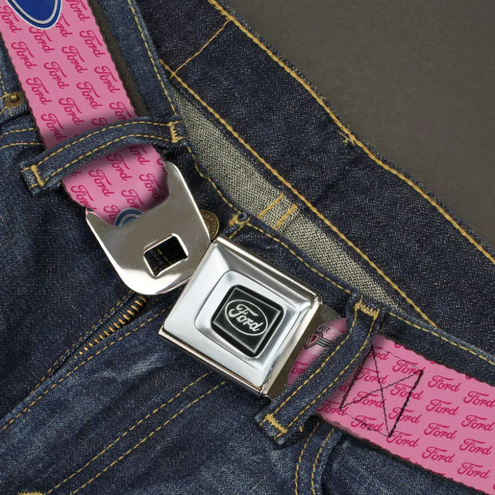 Ford Emblem Seatbelt Belt – Ford Oval w/Text PINK REPEAT Webbing