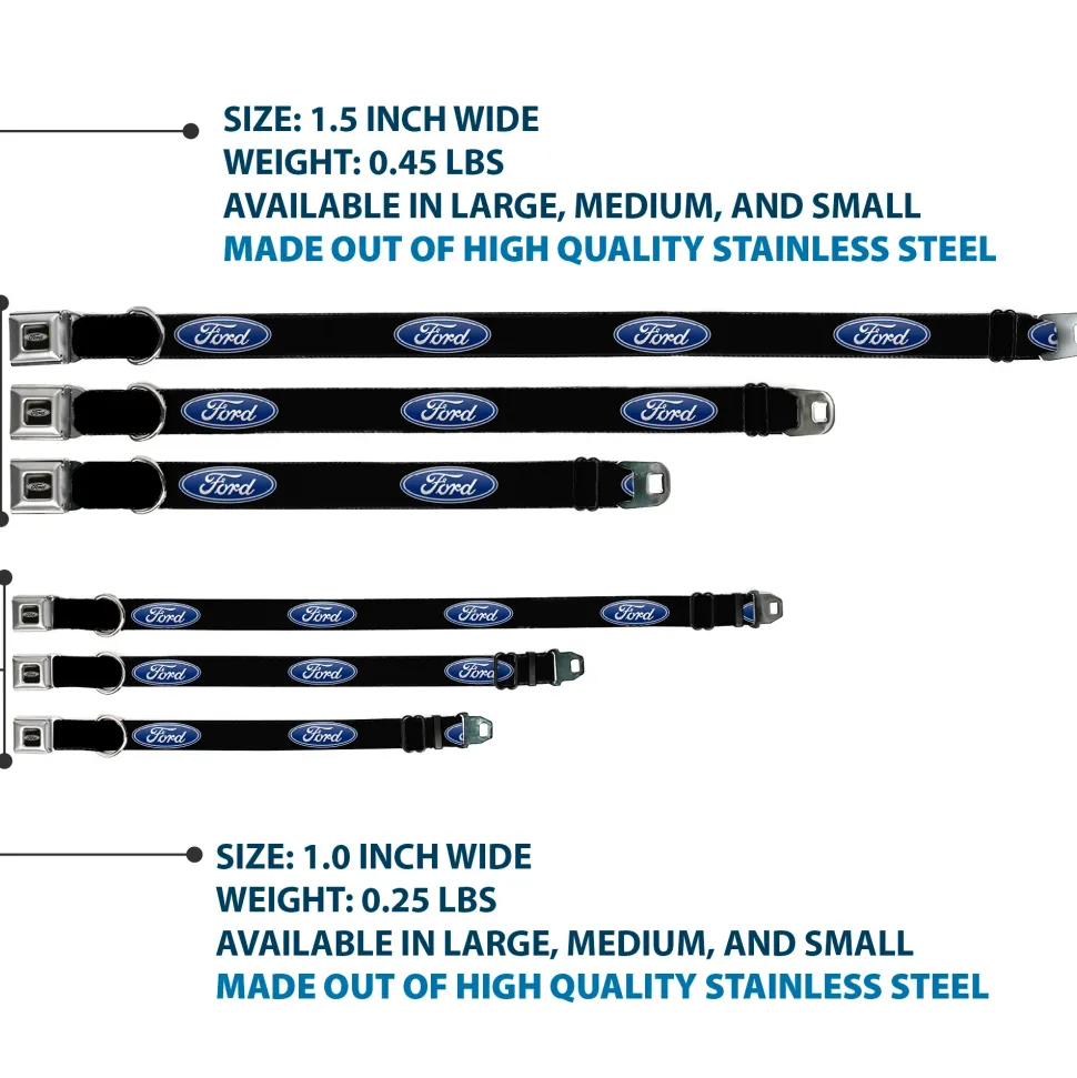 Your dog will be the talk of the town when people notice they’re wearing this awesome SeatBelt Dog Collar! Made from high-density polyester and durable steel components, this collar is built to last. It features beautiful vibrant artwork. The buckle is a miniature authentic SeatBelt Buckle, so you press the center button to release the clasp. This product is Made in USA by Buckle-Down Inc. and officially licensed by Ford.