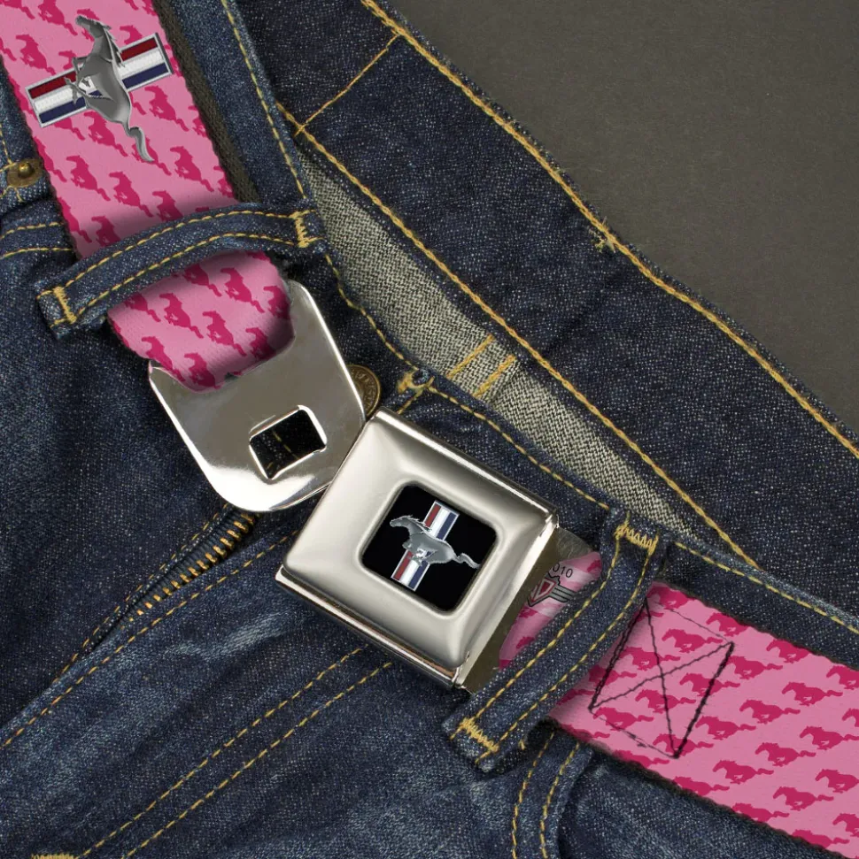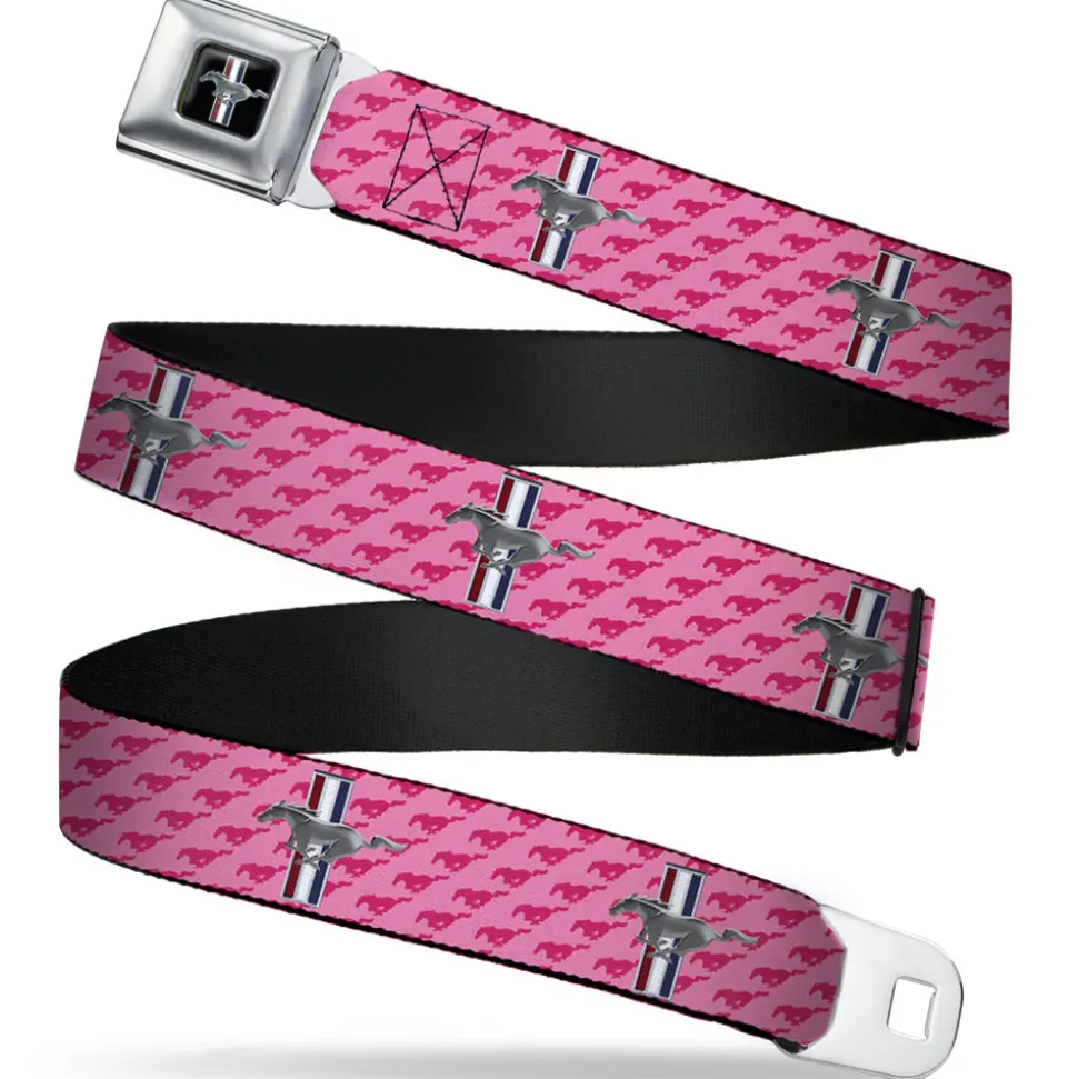 Ford Mustang Emblem Seatbelt Belt – Ford Mustang w/Bars w/Text PINK LOGO REPEAT Webbing