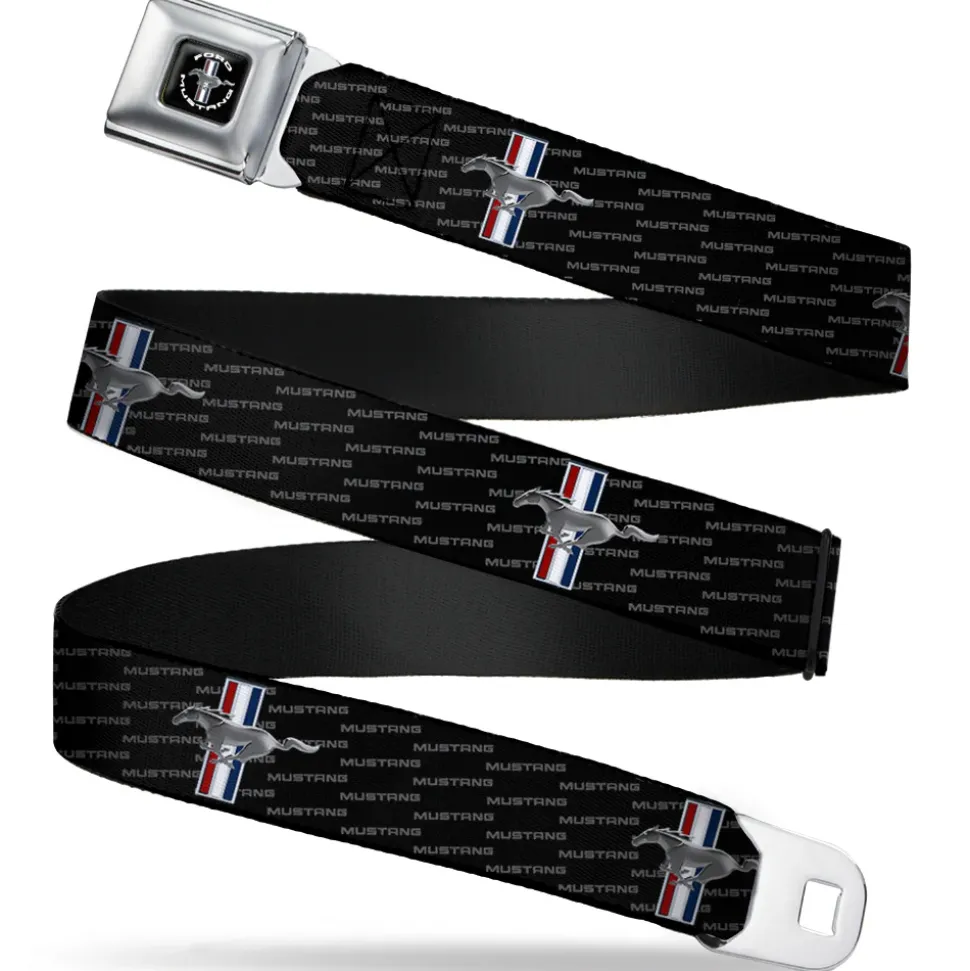 FORD MUSTANG Tri-Bar Logo Full Color Black White Silver Red Blue Seatbelt Belt – Ford Mustang w/Bars REPEAT w/Text Webbing