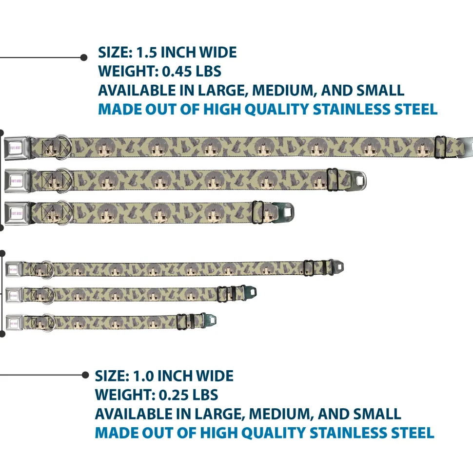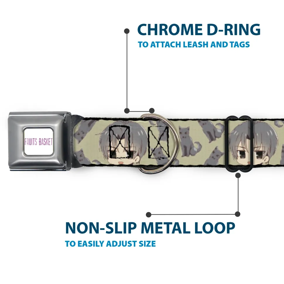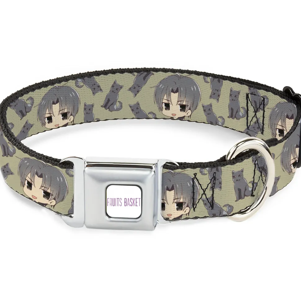 FRUITS BASKET Title Logo Full Color White/Purple Seatbelt Buckle Collar – Fruits Basket Chibi Shigure Soma and Dog Scattered Olive/Gray