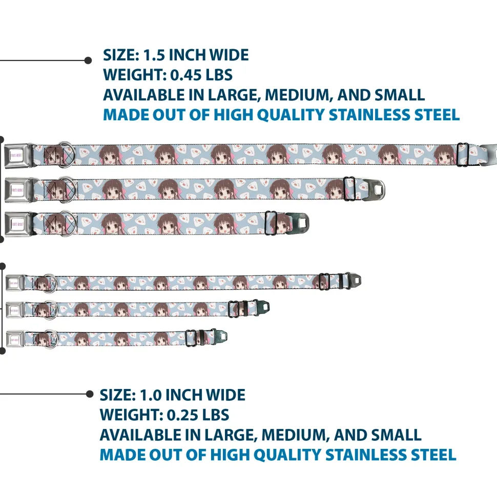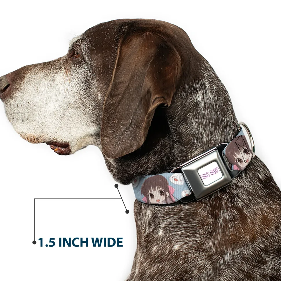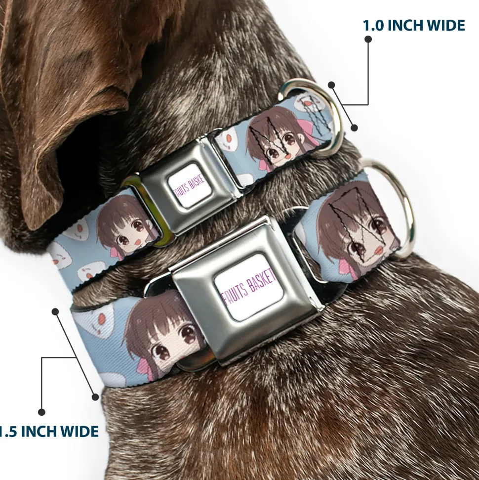 FRUITS BASKET Title Logo Full Color White/Purple Seatbelt Buckle Collar – Fruits Basket Chibi Tohru Honda and Rice Ball Scattered Light Blue