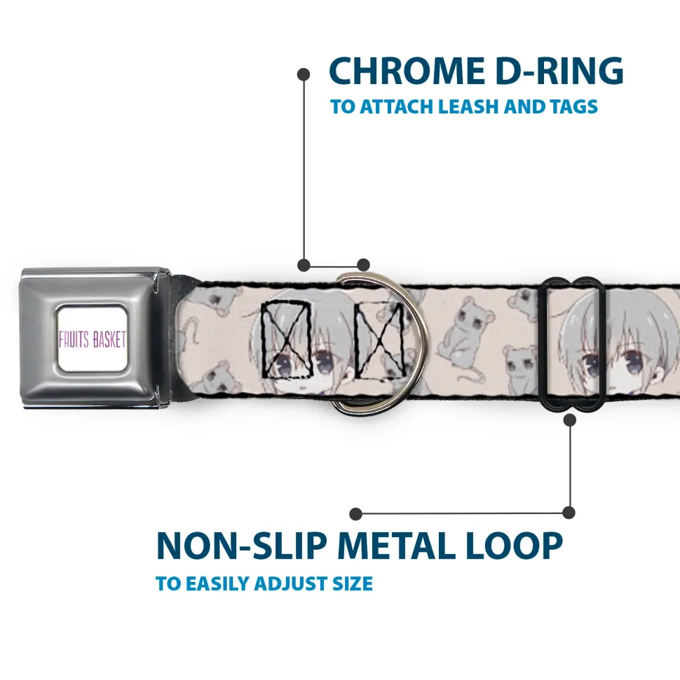 FRUITS BASKET Title Logo Full Color White/Purple Seatbelt Buckle Collar – Fruits Basket Chibi Yuki Soma and Rat Scattered Beige/Gray
