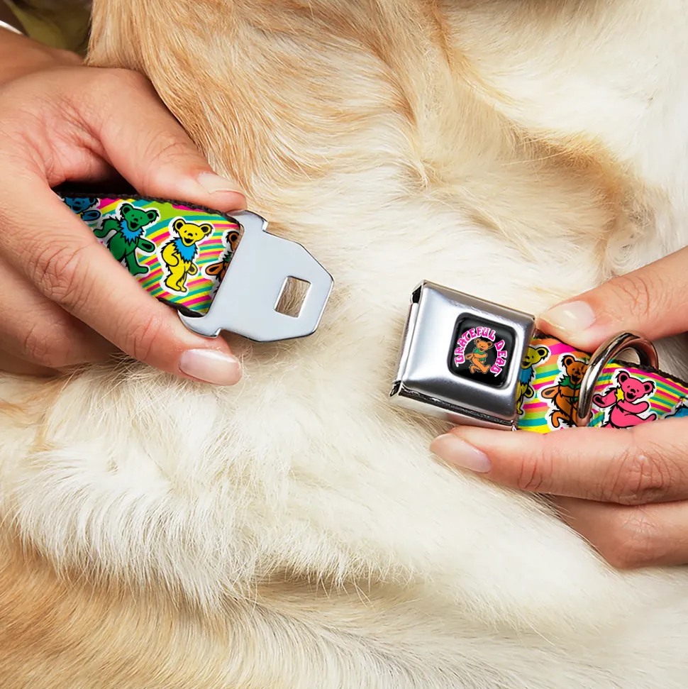Your dog will be the talk of the town when people notice they’re wearing this awesome SeatBelt Dog Collar! Made from high-density polyester and durable steel components, this collar is built to last. It features beautiful vibrant artwork. The buckle is a miniature authentic SeatBelt Buckle, so you press the center button to release the clasp. This product is assembled in the USA by Buckle-Down Inc. and officially licensed by Grateful Dead.