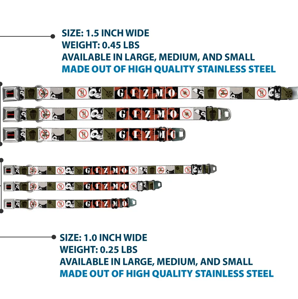 GREMLINS Text Logo Full Color Black/Red Seatbelt Buckle Collar – Gremlins GIZMO Poses/Rules Blocks Red/Greens/Grays/White