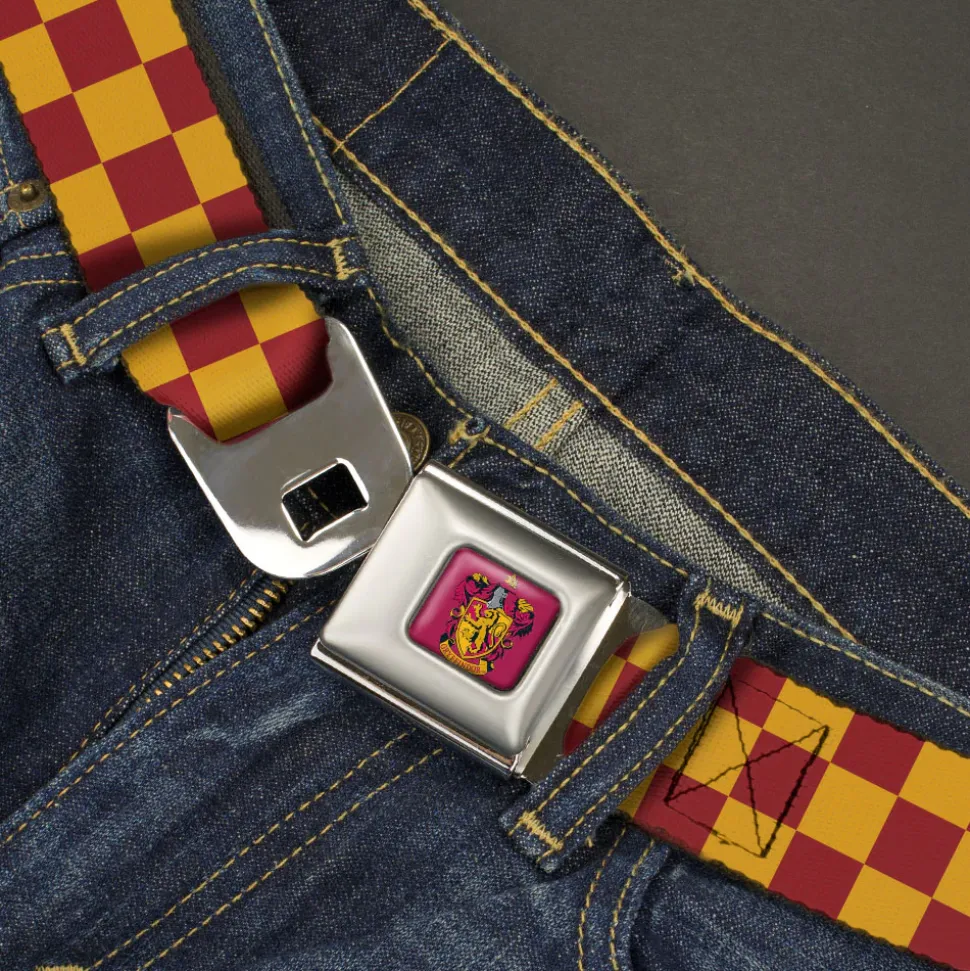 Gryffindor Crest Full Color Red Seatbelt Belt – Harry Potter Gryffindor House Checkers Gold/Burgundy Webbing