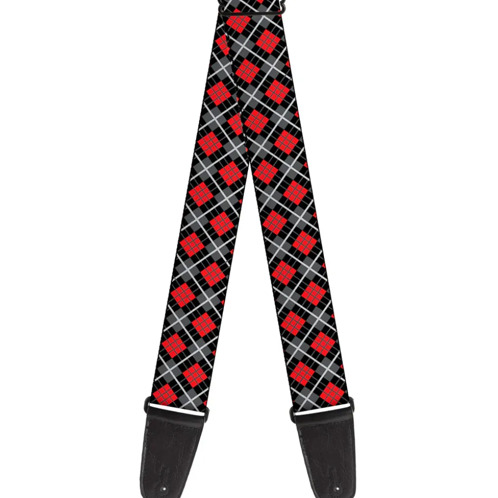 Guitar Strap – Argyle Black Gray Red