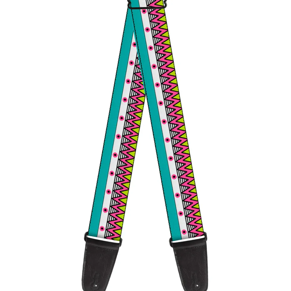Guitar Strap – Aztec 14 Seafoam Green White Pink Lime Green Black
