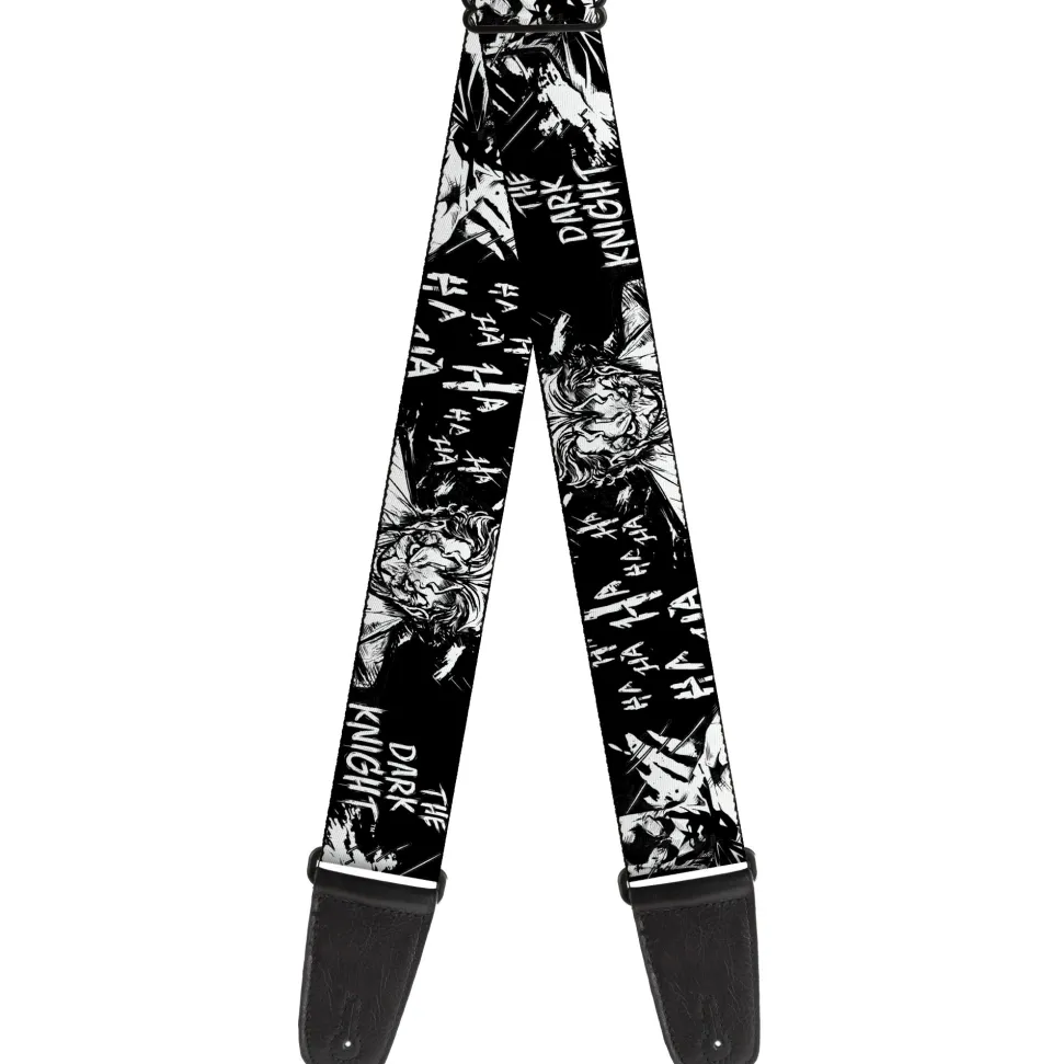 Guitar Strap - Batman THE DARK KNIGHT and Joker Smiling Sketch Close-Ups Black/White