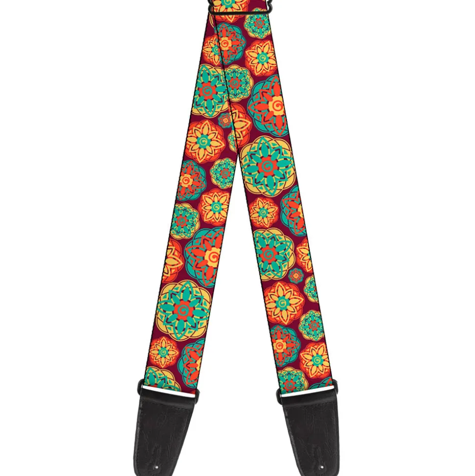Guitar Strap - Boho Mandala Burgundy Yellow Turquoise Orange