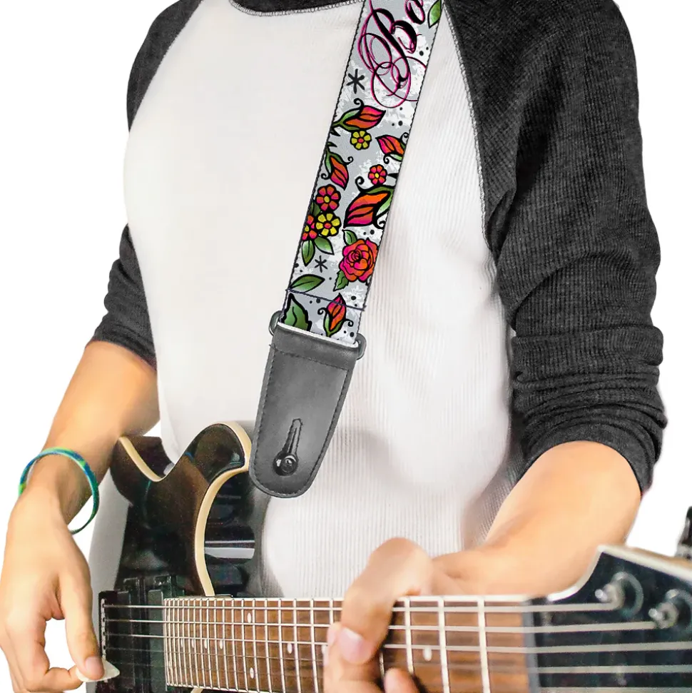 Guitar Strap – Born to Blossom White