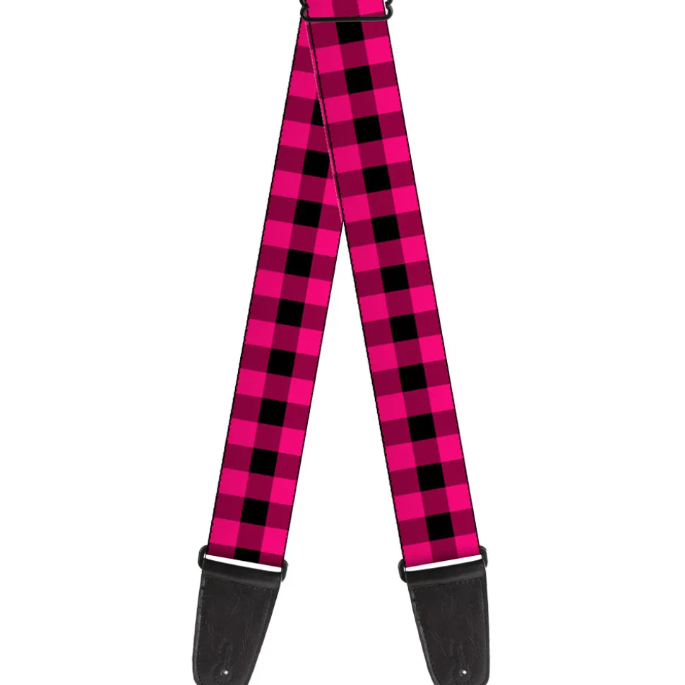 Guitar Strap – Buffalo Plaid Black Fuchsia