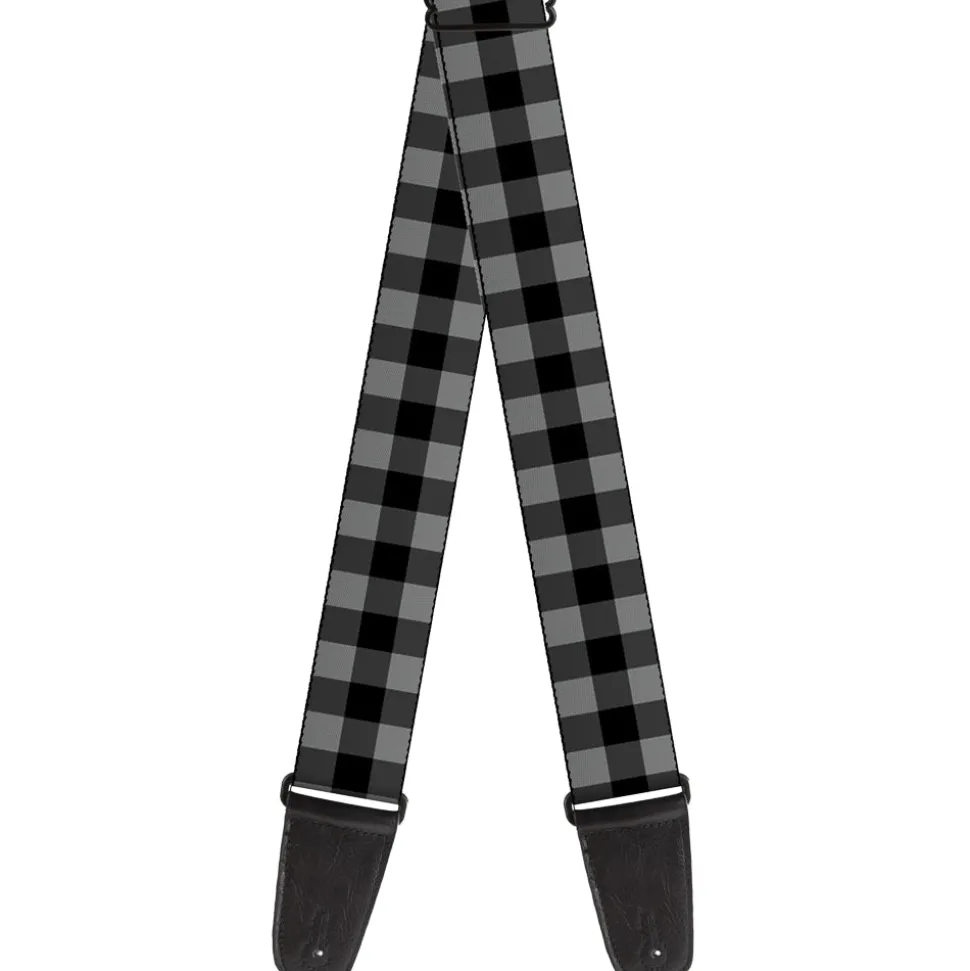 Guitar Strap - Buffalo Plaid Black Gray