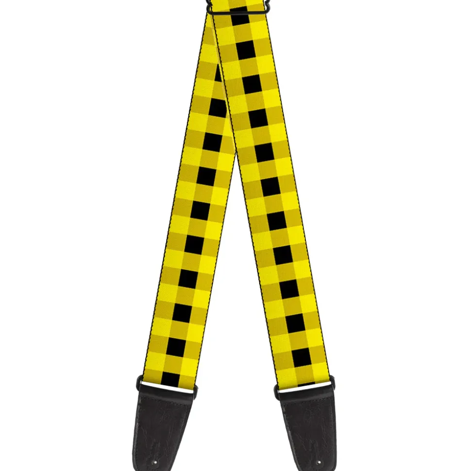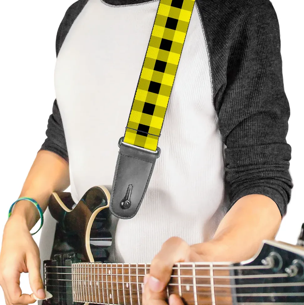 Guitar Strap – Buffalo Plaid Black Neon Yellow
