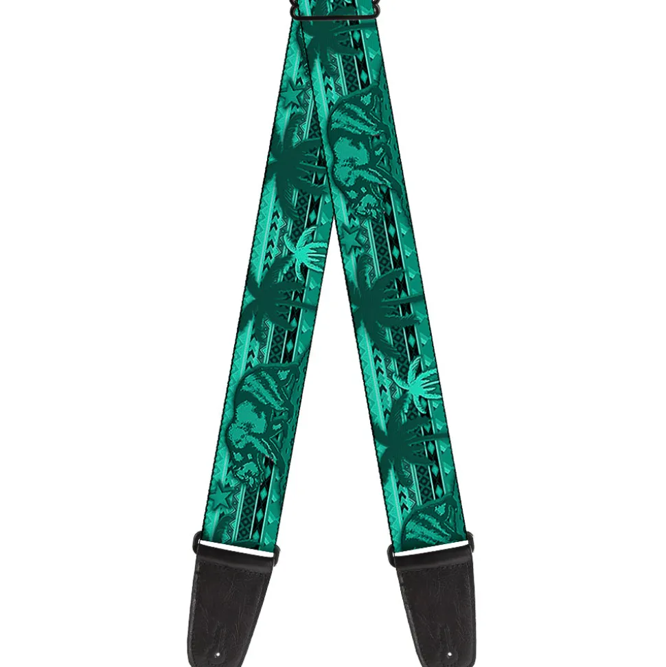 Guitar Strap - Cali Bear Palm Trees Geometric Green