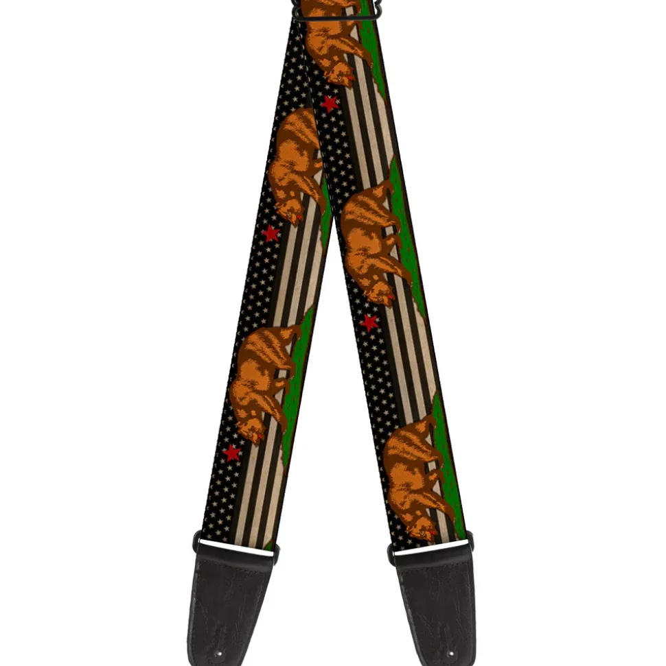 Guitar Strap - Cali Bear Star US Flag Stretch Black White Red
