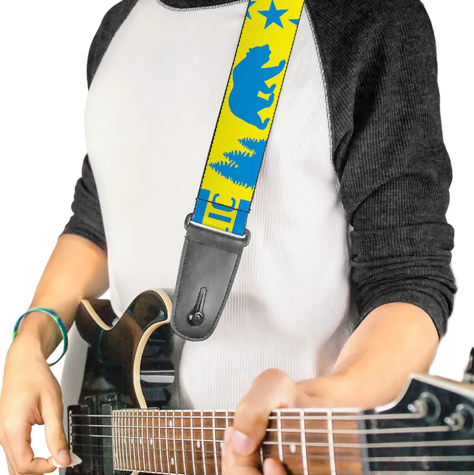 Guitar Strap – CALIFORNIA REPUBLIC Bear Stars Silhouette Yellow Blue