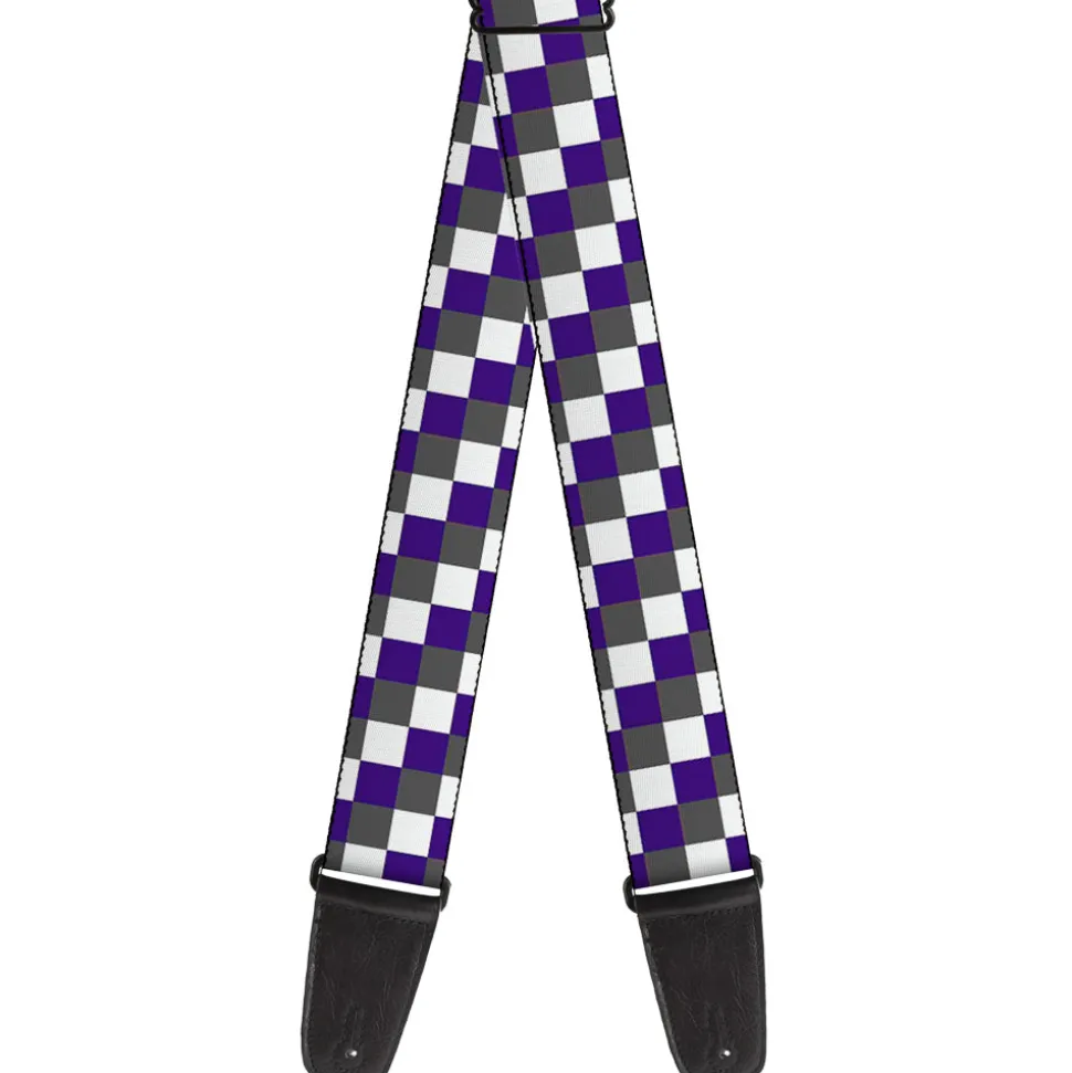 Guitar Strap – Checker Gray Purple White