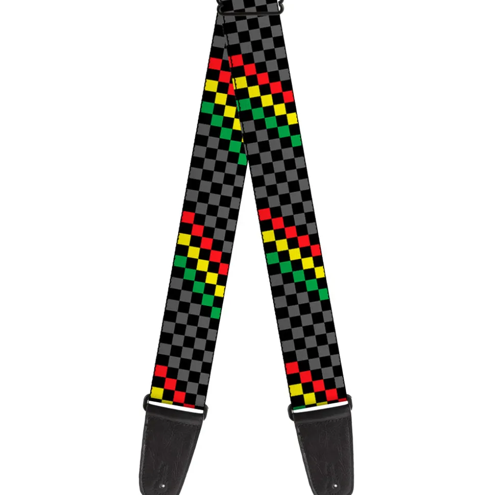 Guitar Strap - Checker Stripe Black Gray Rasta